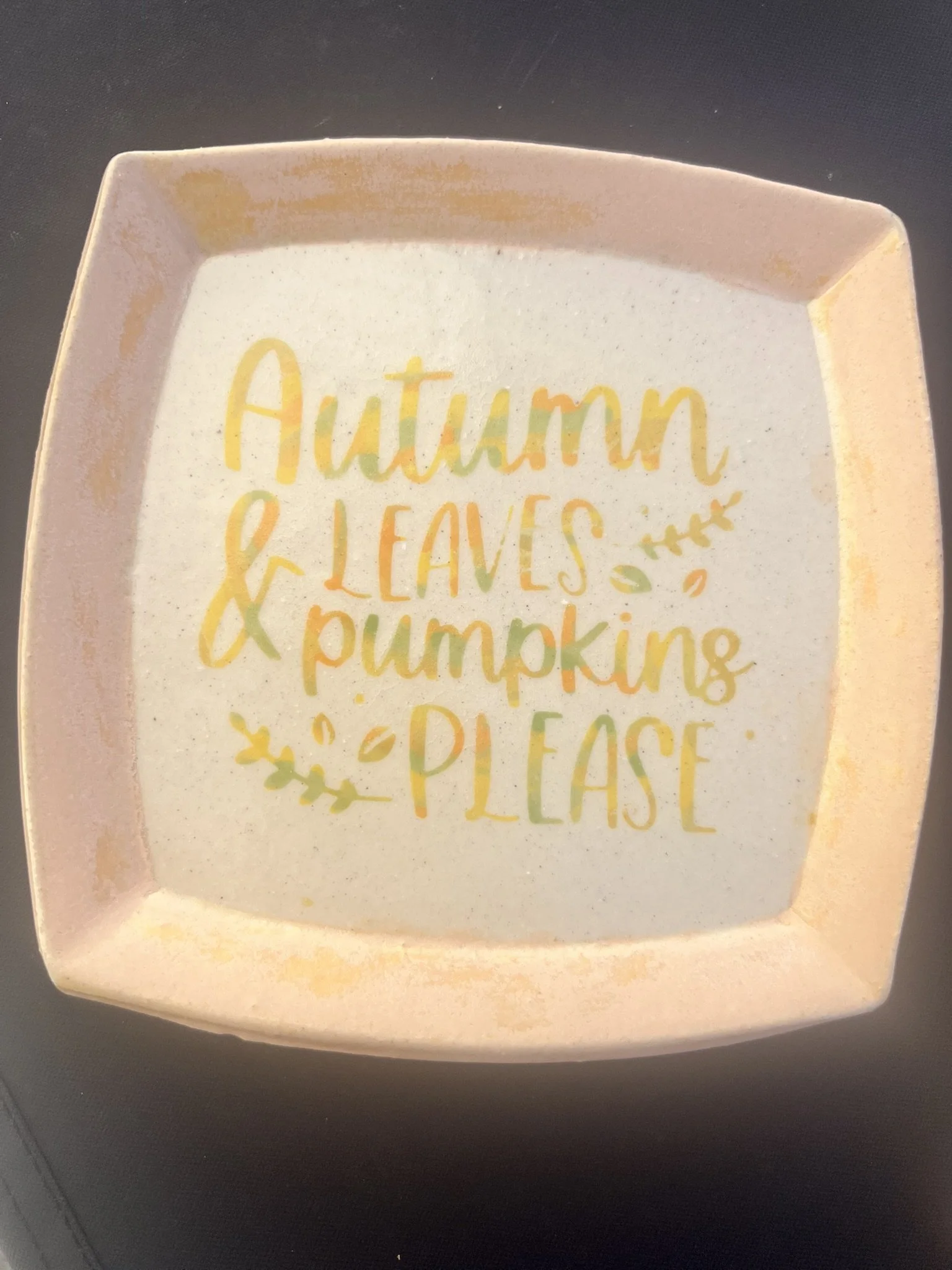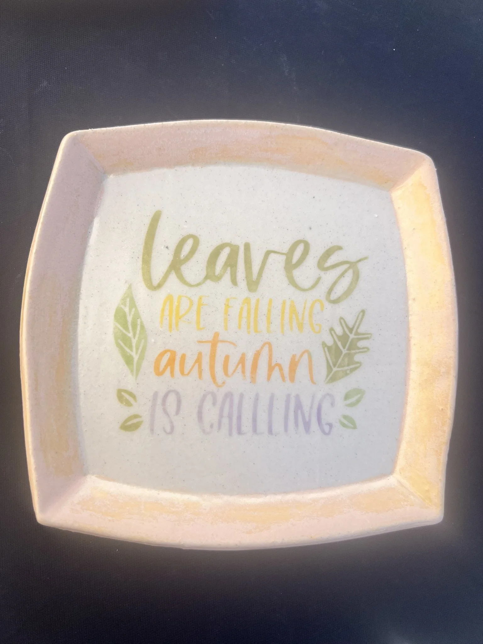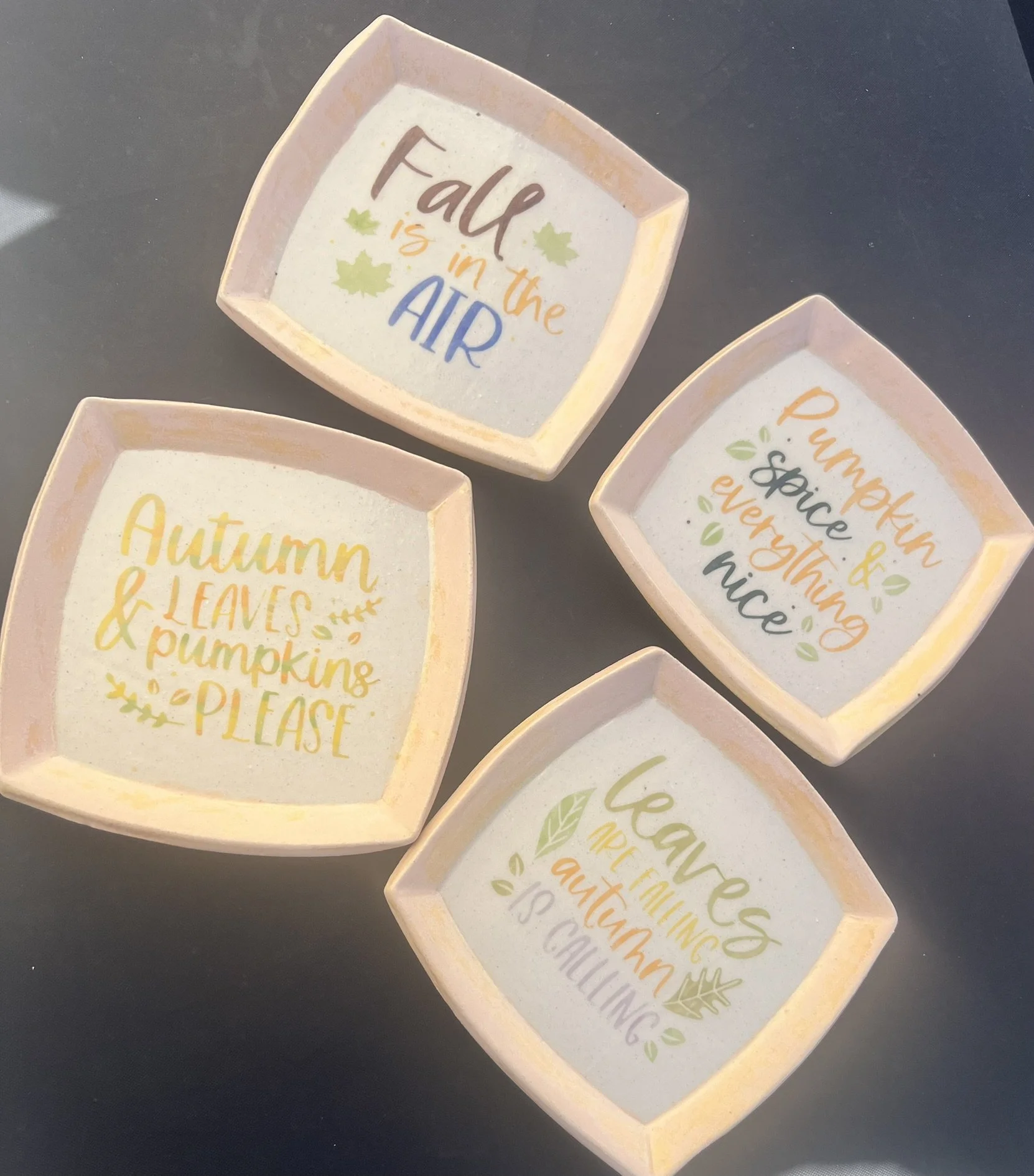 Set of Four Autumn-Inspired Ceramic Dishes Fall Sayings Collection $45.00 Handmade Purple Ceramic Dish Set Scalloped Trinket and Serving Trays (Set of 2) $35.00 Speckled Pink Ceramic Trinket Dish with Scalloped Edges with Blue Wave Design $25.00 Speckled Octagon Ceramic Tray with Embossed Floral Bouquet $45.00 Product Handmade Ceramic Scalloped Dish Set Blue Floral Speckle Set of 3Name $35.00 Handmade Hanging Ceramic Bird Feeders (Set of 2) Unique Outdoor Pottery $55.00 Handmade Ceramic Christmas Tree Dishes: Speckled Holiday Decor, Set of 2 $40.00